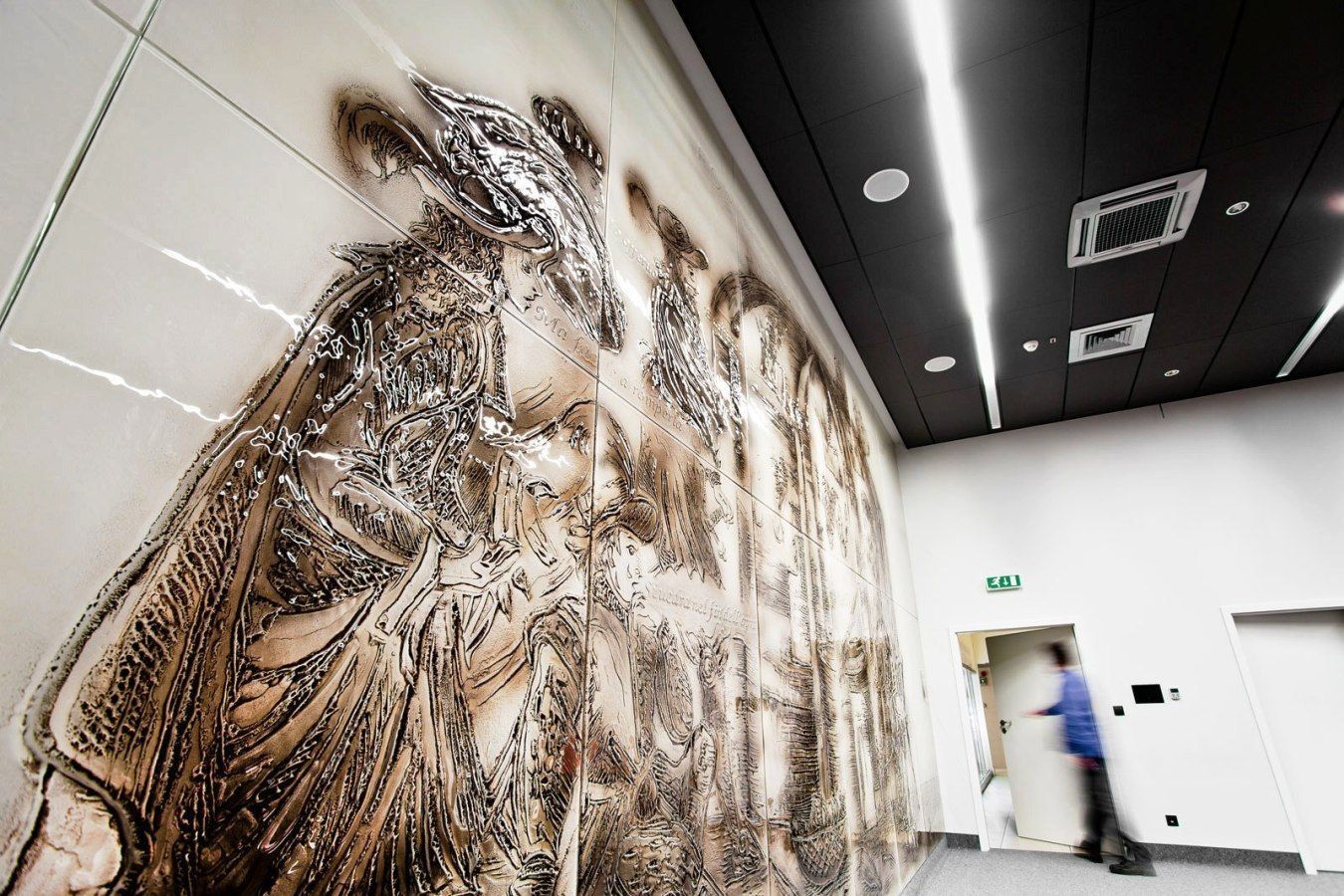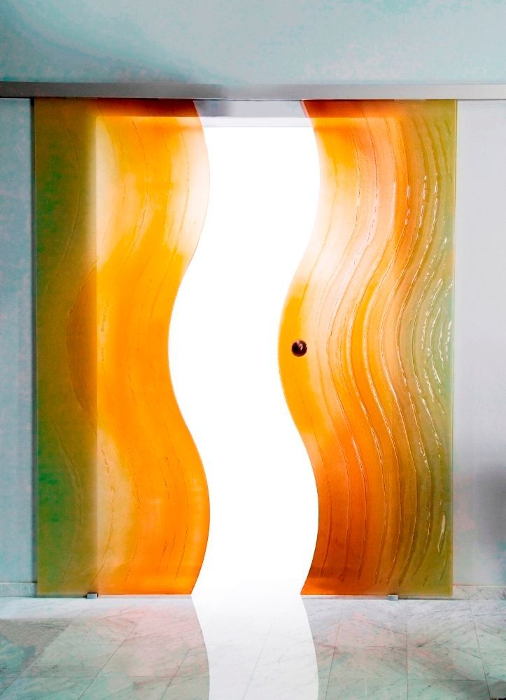 Fused glass is decorative and three-dimensional, with one side having a visible relief and the other side being smooth, allowing for customization with colors or staying clear.